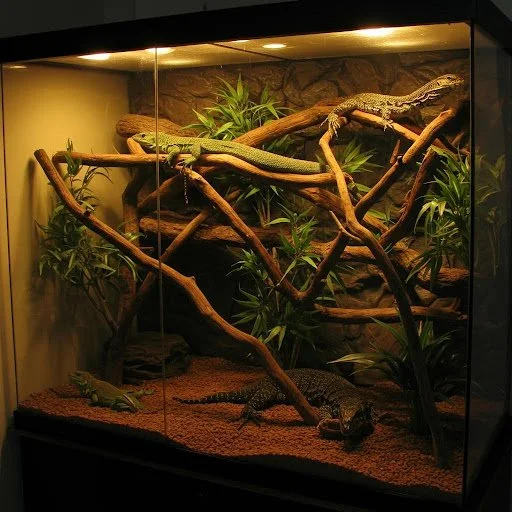 Tall, spacious habitats with 6 foot length or height permit true arboreal behavior and adequate basking/feeding zones